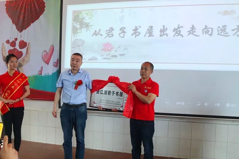 《爱你》杂志社社长谢乐军在启动仪式上致辞。他以“自豪”、“感动”、“祝愿”为关键词,对活动予以高度评价。他说,家乡让自己无比自豪,洞口县出了护国将军蔡锷、八一南昌起义功勋袁也烈、著名作家谢璞、微信之父张小龙,以及近获央视诗词大赛总冠军的“快递哥”雷海为等等。伟人名人辈出,是值得每个家乡人无比自豪的。这次活动令人感动,君子书屋关注阅读、并有这么多热心公益的人士支持,这是功德无量的大事!阅读能改变人生,他最后衷心祝愿书屋越办越好,并希望孩子们用好这一平台,更快更好地发展、成长、成才!