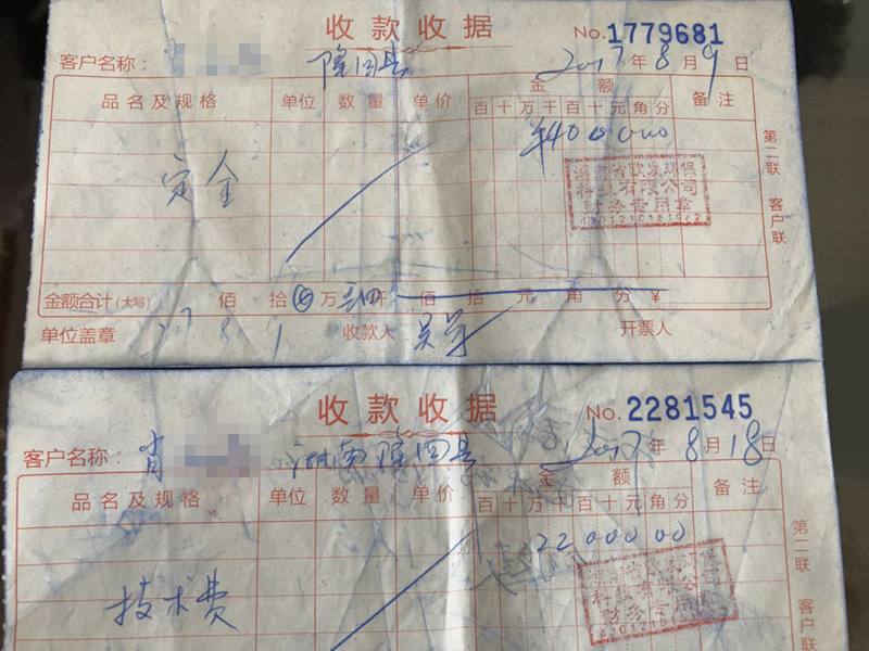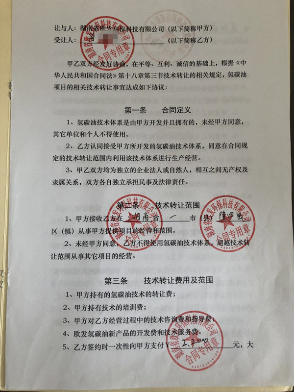 去年8月18日,肖先生在一次性缴纳了22000元的技术转让费后与湖南欧发环保科技有限公司签订了合同。