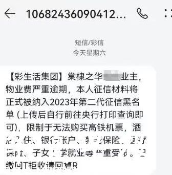 蒋先生说:“彩生活公司自身都是‘老赖’,竟然发短信威胁业主,要将欠费业主也拉入黑名单,业主笑称,法院是你家里开的吗?”