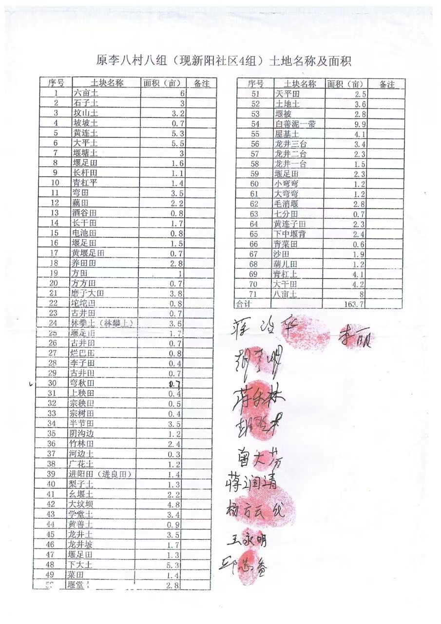 对于来平珍家承包土地的上述地块和面积,今年1月7日和21日,原李八八组数十位村民均自愿联名签字,证实1982年土地下户时,来平珍家分得大平土、进阳田、土地土、天平土、大弯弯等土地的情况。另外,还有来平珍父母在龙井三台、弯田、长杆田、黄连土、黄泥堰、九角田等处的土地等。
